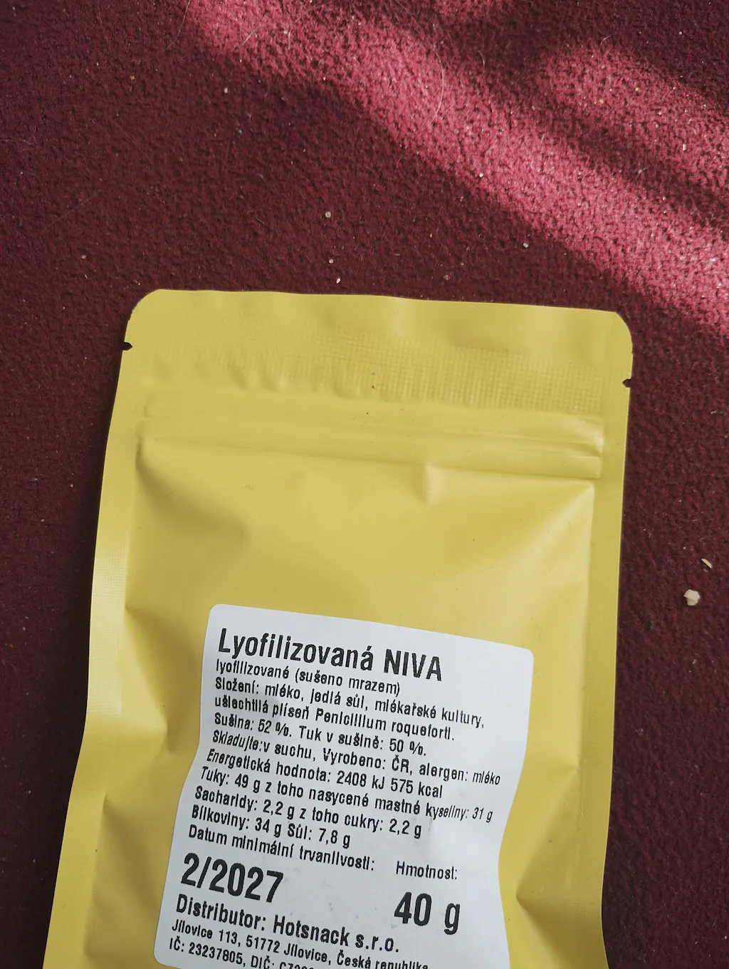 • Náročný proces: Lyofilizace je technologicky a energeticky velmi náročný proces, který trvá desítky hodin. Odměnou je ale sýr, který vydrží měsíce bez lednice a zachová si všechny vitamíny.